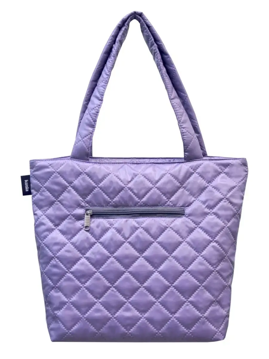 Сумка женская стеганая универсальная для повседневного использования. Имеет одно большое отделение на подкладке, закрывающееся на молнию. Снаружи и внутри есть карманы на молнии. Сумка хозяйственная женская устойчива к воздействию влаги и перепадам температуры. Мягкая и вместительная стеганая тканевая сумка шоппер идеальный выбор для различных ситуаций. Благодаря своему через плечо дизайну, она обеспечивает комфорт и удобство при ношении. Идеально подходит для использования в школе или учебных заведениях. Легко помещает все необходимые вещи - от учебников до ноутбука и хозяйственных предметов. Это женская сумка подходит также и для офиса, позволит вам удобно разместить все необходимые вещи, включая зонт ключи телефон и книги. Когда наступает время для путешествий, этот вместительный аксессуар станет вашим верным спутником. Спортивный стиль позволят вам удобно разместить все необходимые вещи. Сумка также идеально подходит для повседневного использования и станет отличным выбором для девушек, студентов и всех, кто ценит практичность и комфорт. Размер сумки позволит вам легко разместить все необходимые вещи для работы и прогулок. Не упустите возможность приобрести эту универсальную и стильную вещь для себя или в подарок. Она станет незаменимым аксессуаром в вашем гардеробе и позволит вам всегда выглядеть модно и стильно. Ткань полиэстер термостежка, поэтому сумка легкая и практичеая для работы и учебы, путешествий и посещения спортзала, бассейна и просто для прогулки. Сумка от бренда Kosia станет Вашим незаменимым аксессуаром. Женская сумка может станет лучшим подарком на день рождение 8 марта новый год рождество для мамы сестры дочки подруги коллеге любимой. Размер сумки: 34х12х30 см. Длина ручек сумок 50 - 60 см.